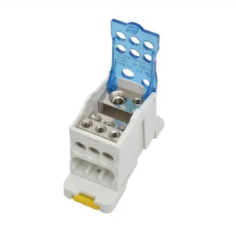 Blocul terminal de distribuție UKK125 este ideal pentru o gamă largă de aplicații, inclusiv în sisteme de alimentare cu energie electrică, distribuția curentului în clădiri industriale sau comerciale și în alte instalații electrice care necesită o distribuție sigură și eficientă a energiei.