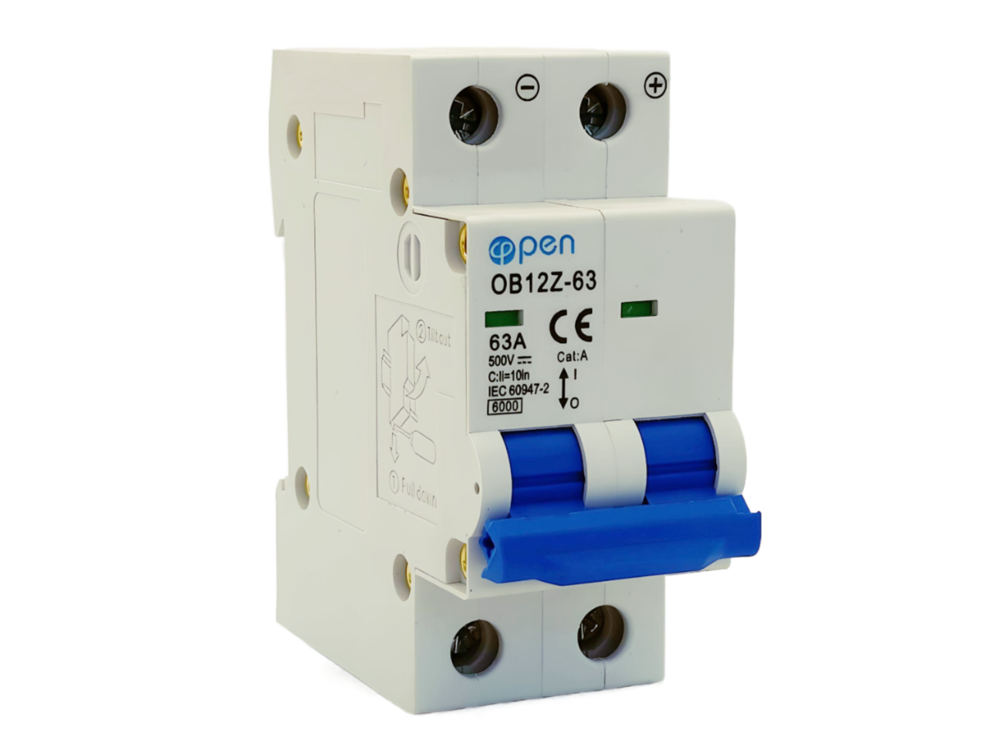 Siguranță Automată 63A 2P 500V DC / Protecție suprasarcină și scurtcircuit / Montaj șină DIN / OPEN
