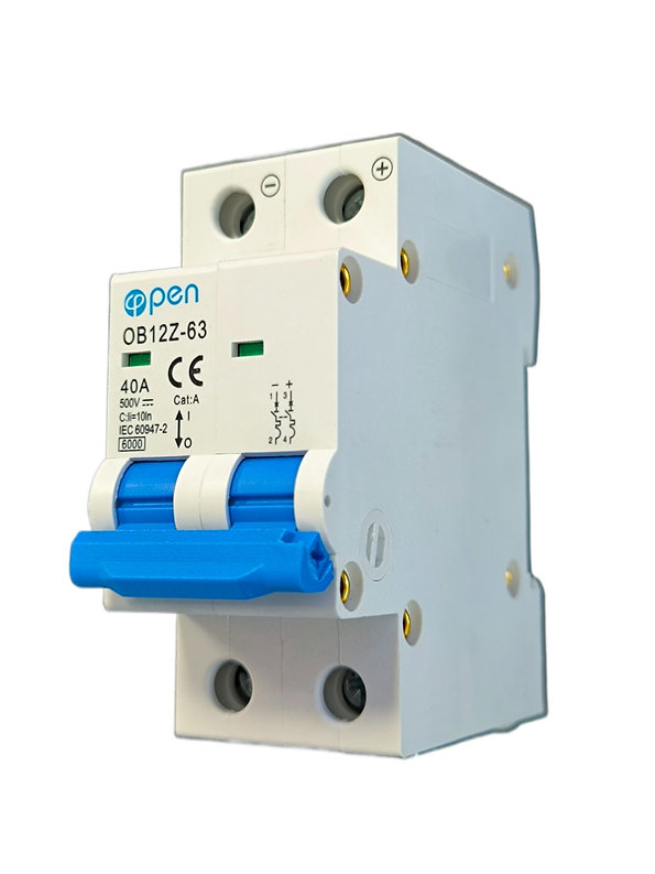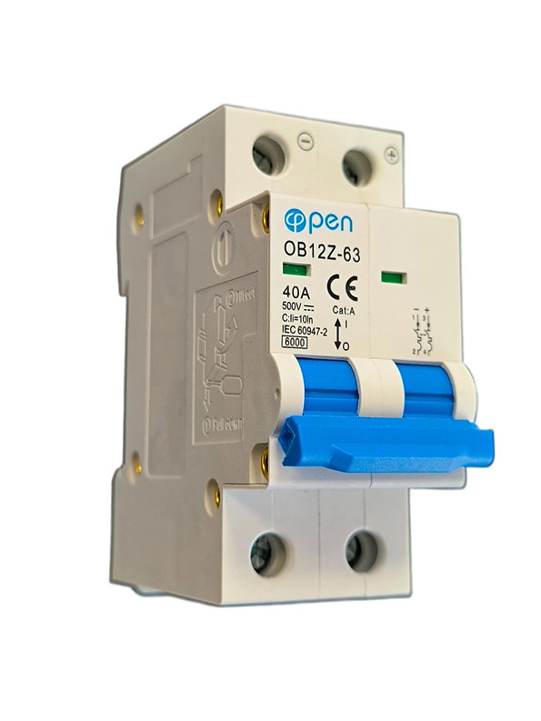 Siguranță Automată DC 40A, 2 Poli, 500V / Protecție suprasarcină și scurtcircuit / Montaj pe șină DIN / Ideală pentru sisteme fotovoltaice și aplicații industriale / OPEN