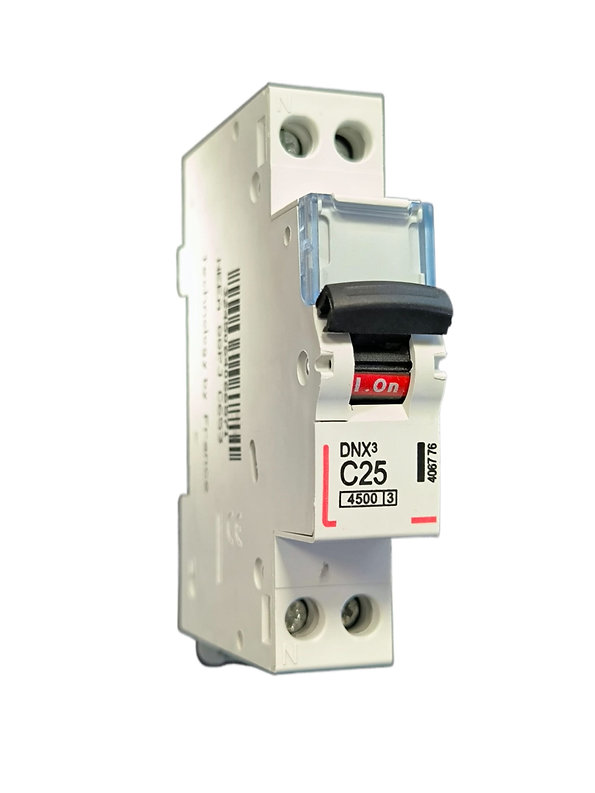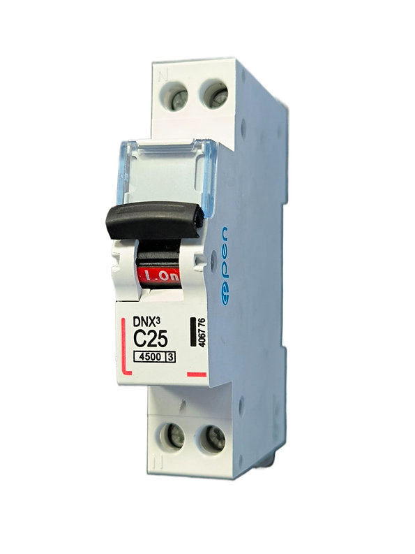 Siguranță Automată OPEN 1P+N 25A - Disjunctor Termo-magnetic clipsabil / Protecție suprasarcină și scurtcircuit, Capacitate rupere 4500 C / Ideal pentru instalații rezidențiale și industriale