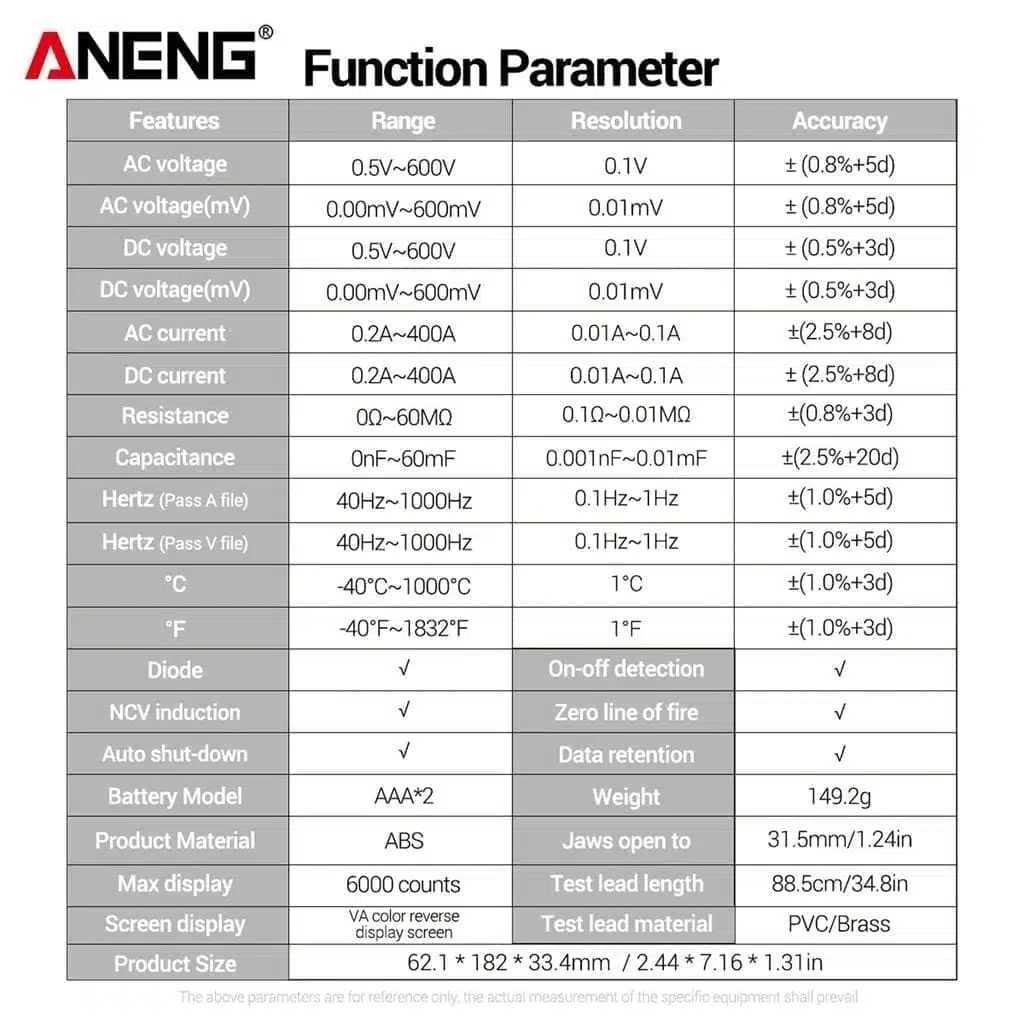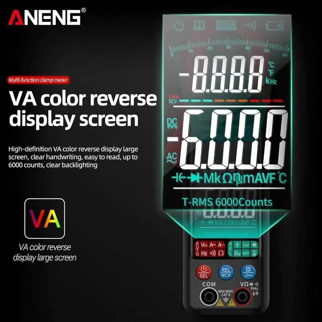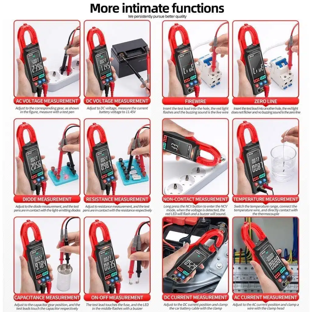 1. MULTIFUNCȚIONAL: Măsoară curent DC/AC, tensiune, rezistență, frecvență și NCV fără contact.